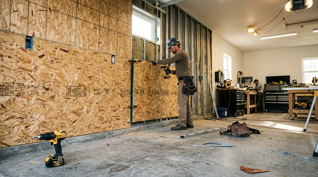 Retour d'expérience : pose d'OSB sur rails placo dans un garage