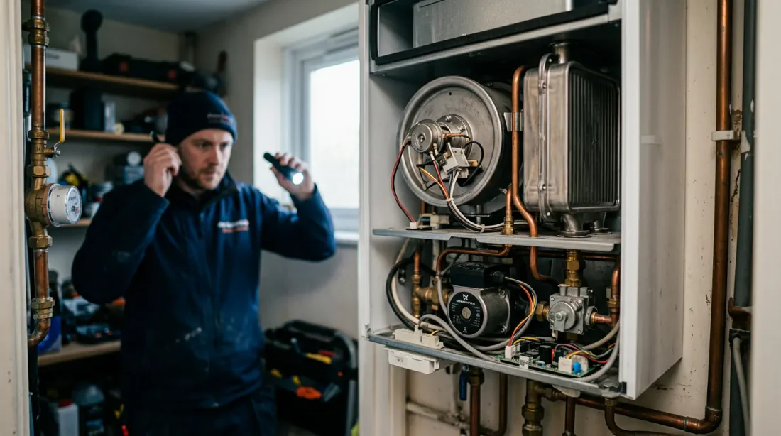 Des vibrations et un ronronnement excessif ? Vérifiez d'abord les fixations murales. Une vis desserrée suffit à transformer votre chaudière en caisse de résonance. Si les vibrations proviennent de l'intérieur de l'appareil, le ventilateur (extracteur de fumées) peut avoir des roulements usés ou des ailettes encrassées.